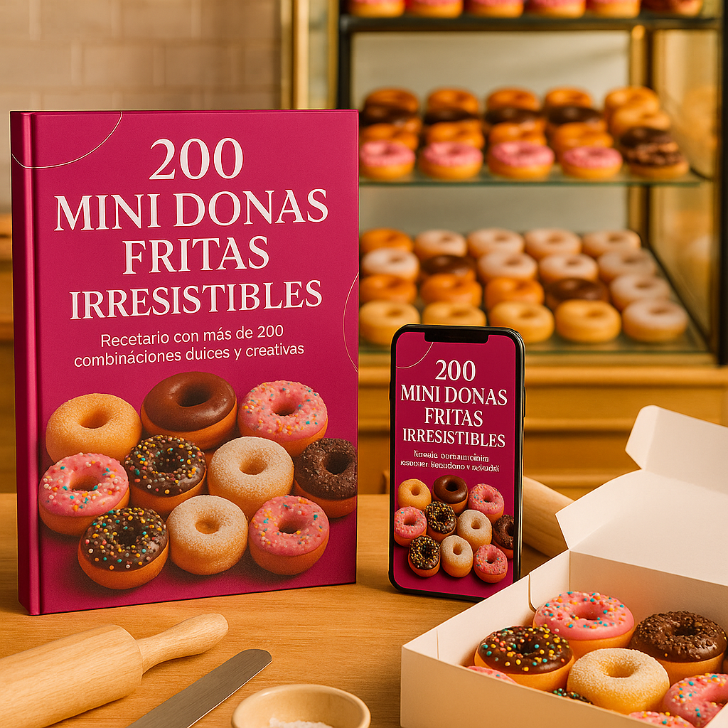 ✨¿Te imaginás poder preparar en casa donitas caseras con más de 200 recetas y combinaciones diferentes. Con este recetario exclusivo vas a descubrir desde las clásicas de vainilla y chocolate, hasta versiones gourmet con frutas, especias y rellenos irresistibles.